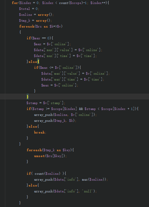 就这段代码来说, 很难通过大致观察就理解代码的意思 , 代码之中光循环就套了3层, 而且还有多处复杂的条件判断,代码格式混乱,连编码的底线缩进都没有满足。 可悲的是这种类型的代码广泛存在于全球范围内无数Web服务器之上, 每天运行着。