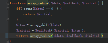 再来一个递归版本的array_reduce实现,帮助更好的理解这个函数的使用意义
