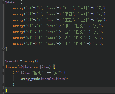 这段代码比较好理解,将数组中性别字段为女的数据项提取出来。 整段代码的逻辑大致如下