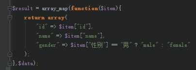 此外, 代码中性别判断语句所在的位置称之为lambda表达式, 更通俗一些的叫法是匿名函数。不难看出, 在SQL的where条件中编写条件判断远不如在匿名函数中写PHP代码来的灵活,在where条件中只能执行or和and逻辑,而在php匿名函数中可以随便怎么写,只要函数的返回值是个布尔值就可以了,这也是php声明性编程优于SQL声明性编程的地方。