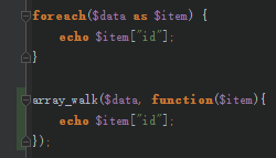 以上代码分别是 foreach和array_walk对于遍历数组的实现方式。 看起来, 好像array_walk的实现方式更加复杂, 但是在更深层次的语义方面